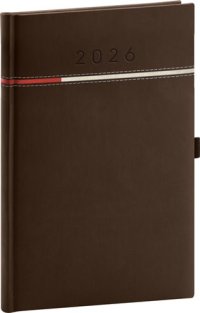 Týdenní diář Tomy 2026 v hnědo-červené barvě.