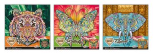 Malování pomocí kamínků Diamond – diář A5 – pomocí kamínků si vytvoř svůj vlastní design diáře – tři různé druhy – dva různé typy mandal a papoušek.