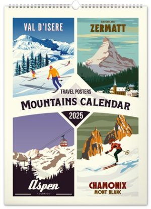 Velkoformátový kalendář s pečlivě vybranými klasickými plakáty horských středisek.