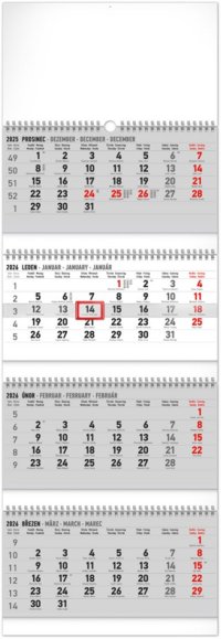Praktický čtyřměsíční kalendář s plochou pro potisk a náhledem čtyř měsíců současně můžete díky dvojité spirále pohodlně složit do obálky velikosti A4.