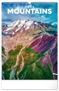 Nástěnný kalendář v atraktivním výškovém formátu obsahuje fotografie majestátních hor z Nového Zélandu, Islandu, Francie nebo USA.