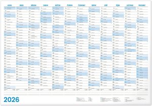 Dlouhý nástěnný sluníčkový kalendář na rok 2026.