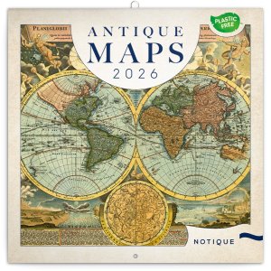 Dvanáct ilustrací starých map v praktickém poznámkovém kalendáři.