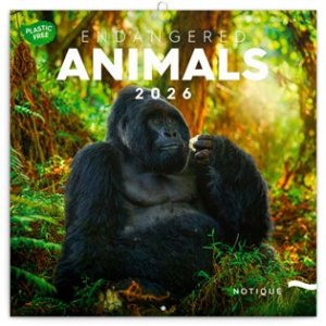 Dvanáct fotografií ohrožených zvířat v praktickém poznámkovém kalendáři.