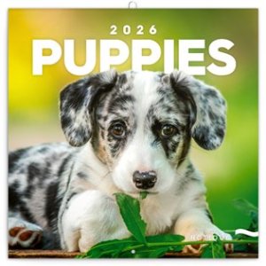 Roztomilá štěňátka na fotografiích v poznámkovém kalendáři.