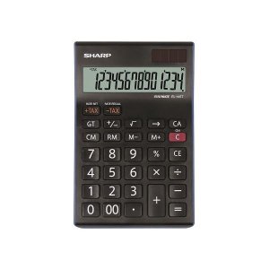 This 16-digit desktop calculator features Tax calculation functions and an adjustable LCD display panel.