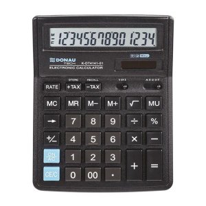 Stolní kalkulačka Nakloněný display 14-místný displej Funkce: odmocnina, procenta, zaokrouhlování, marže, dvojitá paměť Funkce automatického vypnutí Barva: černá Materiál: plast Rozměry: 199 x 153 x …