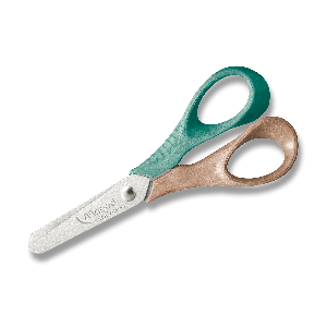 Ergonomické školní nůžky s měkkou rukojetí. Čepele z broušené nerezové oceli, zaoblené špičky.