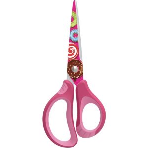 Ergonomické školní nůžky s měkkou rukojetí. Čepele z broušené nerezové oceli, zaoblené špičky.