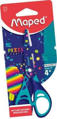 Dětské nůžky Pixel Party designem inspirovaným herními kódy velikost 13 cm dekorované čepele z broušené nerezové oceli nůžky mají zaoblené špičky měkké symetrické rukojeti