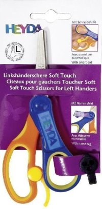 Nůžky pro leváky s převrácenými čepelemi, velikost 16 cm. Pružné rukojeti, mix barev.