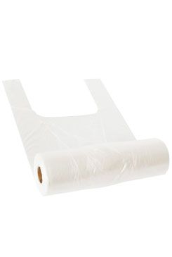 Igelitová transparentní taška s uchy Nosnost 5 kg Rozměr 22+14x44 cm Tloušťka 8 mikronů Extra silná Balení role 200 kusů