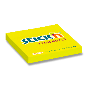 Zářivé samolepicí bločky, 100 listů. 76 x 76 mm.