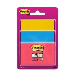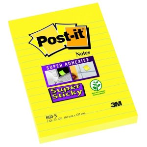 Silně lepicí bločky Post-it Super Sticky v tradiční žluté barvě Splňují certifikaci PEFC Bločky baleny jednotlivě Vhodné na lepení ve vertikální poloze, např. na monitor 90 lístků v bločku