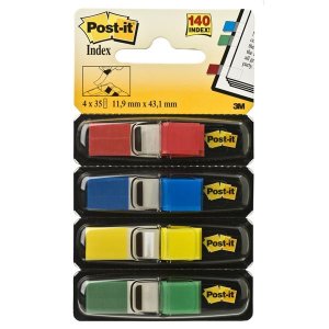 Samolepicí záložky umožňují rychlé nalezení důležité informace Dodávány ve čtyřech barvách Popisovatelné, průhledné a snadno odstranitelné Rozměry: 11,9 x 43,2 mm Balení obsahuje 4 x 35 záložek