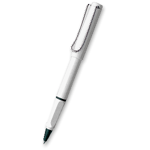 Roller Lamy Safari Shiny White má ergonomické tělo ze zářivého bílého tvrzeného ABS plastu. Úchopová zóna je ergonomicky upravená, víčko je doplněné odpruženým kovovým klipem.