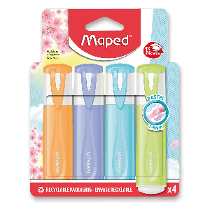 Plochý zvýrazňovač s víčkem v barvě inkoustu v pastelových barvách.