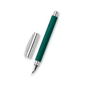 Plnicí pero Faber-Castell Ambition Precious Resin Soft Teal má tělo ze vzácné broušené pryskyřice v kombinaci s doplňky z pochromovaného leštěného kovu.