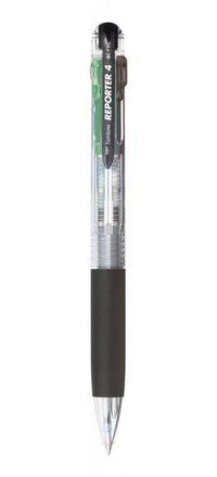 Kuličkové pero se čtyřmi vyměnitelnými náplněmi: černou, modrou, červenou a zelenou.