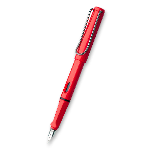 Plnicí pero Lamy Safari v provedení Shiny Red má tělo z tvrzeného ABS plastu, nasazovací víčko a odpružený kovový klip. Úchopová zóna je ergonomicky upravená, hrot je z nerezové oceli.
