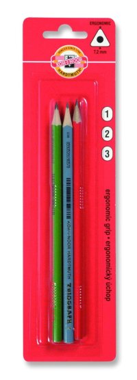 Souprava trojhranných grafitových tužek v gradaci č. 1, 2, 3.