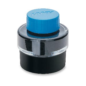 Modrý inkoust balený v 50 g plastové lahvičce určený do plnicích per a sloužící pro ruční psaní na papír.