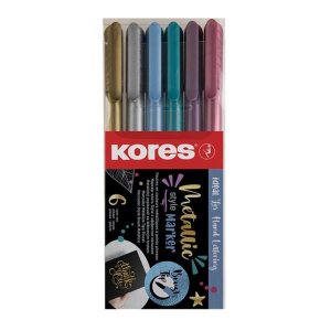 Akrylové fixy glitrové. 6 různých barev: fialová, stříbrná, smaragdová, modrá, zlatá a ohnivá.