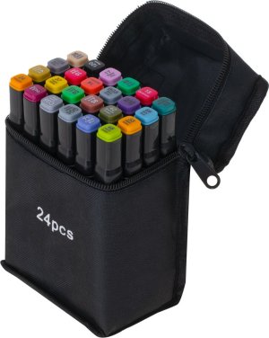 Sada 24 fixů v různých barvách a plastový stojánek pro snadné uložení.