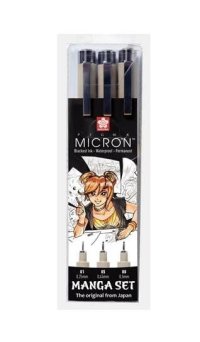 Sada nástrojů Manga se 3 pery Pigma Micron 01, 05 en 08 černá.