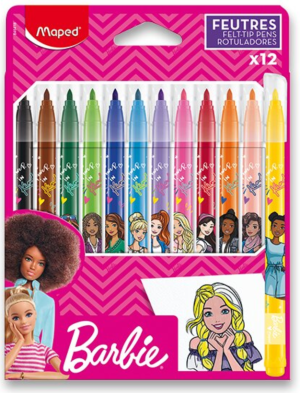 Souprava 12 barevných fixů Maped s atraktivním designem oblíbené panenky Barbie.