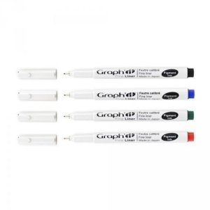 Jednorázový technický liner obsahující neblednoucí a vodě odolný inkoust s vysokým obsahem pigmentu.