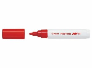 Akrylový dekorační popisovač Pilot Pintor podporuje vaši představivost a kreativitu S ultra krycí schopností kreslí na různé povrchy jako například papír, dřevo, sklo, keramika, plast, kov, tkanina, …