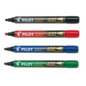 Permanentní popisovač odolný proti vodě a stěru, vhodný pro většinu povrchů Netoxický inkoust s nízkým zápachem, rychleschnoucí Plastové tělo s klipem Zkosený hrot Šíře stopy: 3,0 - 5,0 mm Sada 4 popisovačů: …