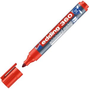Popisovač na bílé tabule edding 360 obsahuje speciální cap-off inkoust, který nevyschne, pokud je popisovač ponechán pár dní bez víčka.