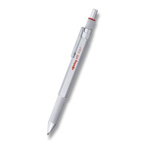 Kuličkové pero Multipen Rotring 600 Silver 3 v 1 má celokovové šestiboké tělo s protiskluzovou rýhovanou úchopovou částí a matně lakované mosazné tělo v kombinaci s doplňky v dané barvě.