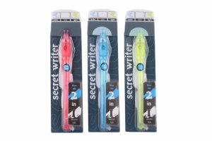 Kouzelné oboustranné pero. Na jedné straně pero s mizejícím inkoustem, který je poté viditelný pouze pod speciální baterkou na konci tužky.