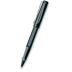 Roller Lamy Safari v provedení Shine Black má tělo z tvrzeného ABS plastu, nasazovací víčko a odpružený kovový klip. Úchopová zóna je ergonomicky upravená.