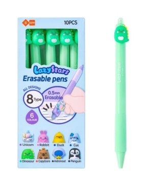 Klikací gumovací gelový roller Dino s hrotem 0,5 mm, barva inkoustu - zelená.
