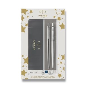 Sada Duo Set obsahuje kuličkové pero Parker Jotter Stainless Steel a mechanickou tužku Parker Stainless Steel.