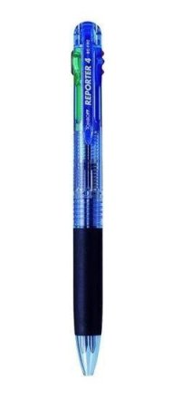 Kuličkové pero se čtyřmi vyměnitelnými náplněmi: černou, modrou, červenou a zelenou.