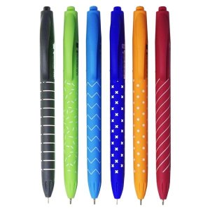 Kuličkové pero s olejovou náplní, která umožňuje psát i na zamaštěný či znečištěný papír Gumový úchop pro ergonomické držení Dodáváme s modrou náplní, která je vyměnitelná Množství v originálním balení: …