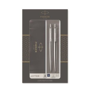 Dárková sada Parker Jotter kuličkové pero + mikrotužka Oblíbený a nadčasový model kuličkového pera a mikrotužky v celokovovém provedení Výjimečně odolný hrot Šíře stopy pera: 0,35 mm Výjimečně odolný …