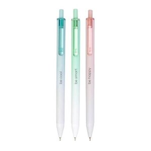 Odlehčené pero se stiskacím mechanismem Mix pastelových barev Sametově hladký povrch s potiskem be happy, be cool, be smart Náplň modrá easy ink Šířka stopy 0,5 mm