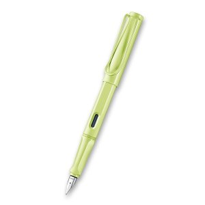 Plnicí pero Lamy Safari v provedení Springgreen má tělo z tvrzeného ABS plastu, nasazovací víčko a odpružený kovový klip. Úchopová zóna je ergonomicky upravená, hrot je z nerezové oceli.