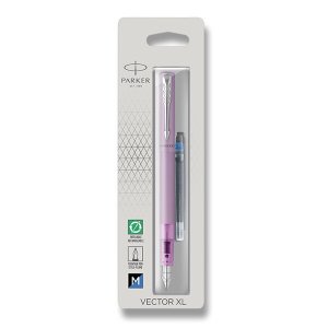 Mosazné tělo i víčko se saténovým metalickým lakem barvy lila a transparentní úchop potěší uživatele plnicích per.