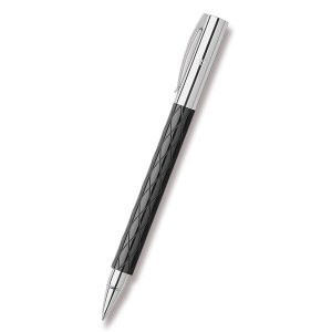 Kuličkové pero Faber-Castell Ambition Precious Resin s tělem z broušené černé pryskyřice v kombinaci s doplňky z pochromovaného leštěného kovu.