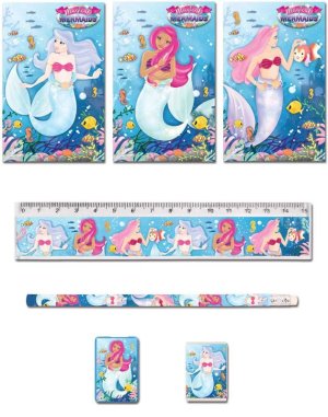 Školní set obsahuje tužku/propisku/gumu/ořezávátko/pravítko 15 cm.