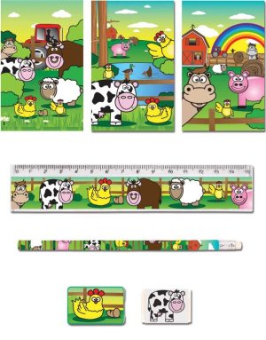 Sada psacích potřeb s motivem zvířátek z farmy.