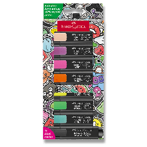 Sada plochých zvýrazňovačů Faber-Castell Textliner 46 v 8 odstínech v moderním graffiti designu.