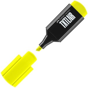 Plochý zvýrazňovač Faber-Castell Short TXTLNR SF ve 4 neonových odstínech.